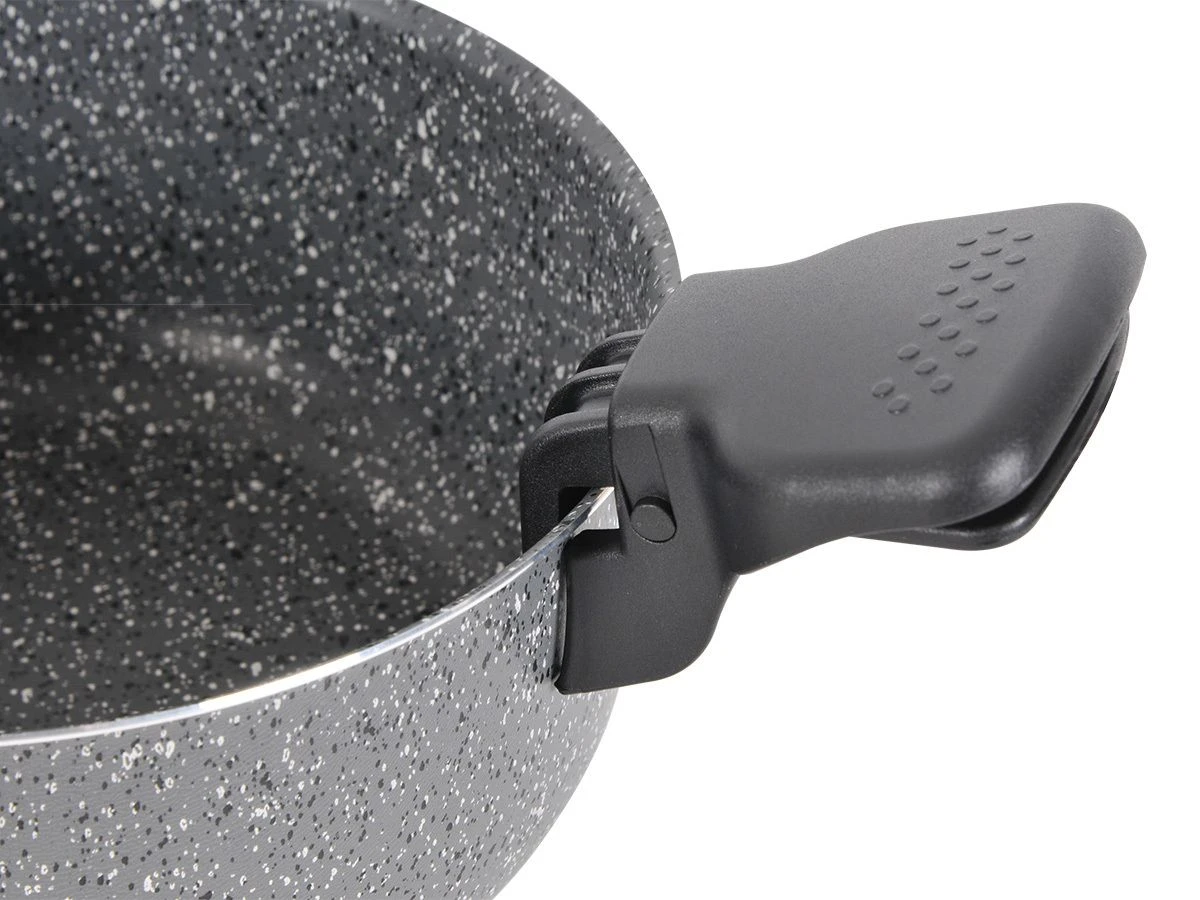 Deze pannenset is gemaakt van aluminium, voorzien van een antiaanbaklaag.