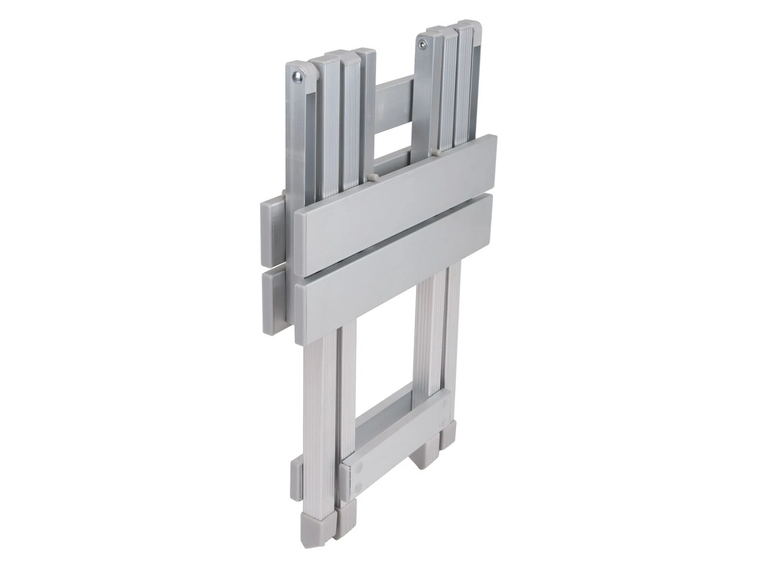 Het krukje heeft een klein formaat, het blad is 30 x 25 cm en hij is 40 cm hoog. Doordat het tafeltje gemaakt is van aluminium is hij hitte- en waterbestendig.