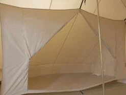 De luifel wordt aan de bovenzijde over de boogstok van de tent bevestigd door middel van scheerlijnen.