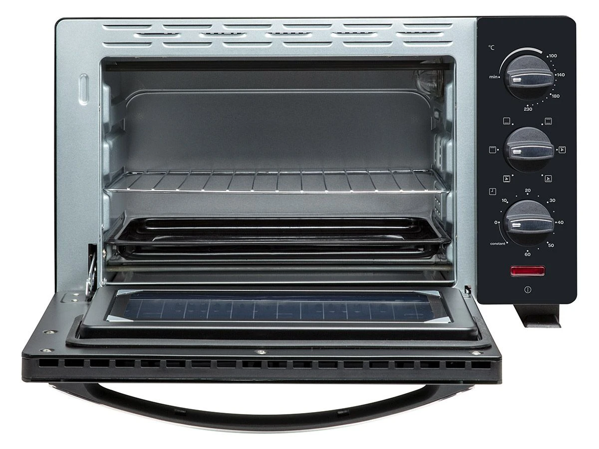 De oven heeft een inhoud van 20 liter, heeft een regelbare temperatuur tot 230°C en is voorzien van een timer die in kunt instellen tot 60 minuten. Door de non-sticklaag aan de binnenzijde, is de oven makkelijk schoon te maken. De oven wordt geleverd met een bakplaat, ovenrooster en een kruimelplaat.