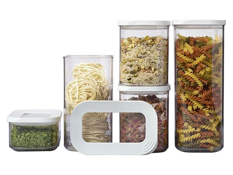 De Modula set bestaat uit: 1 x 2000 ml, 1 x 1500 ml, 2 x 1000 ml en 1 x 425 ml. De witte afdichtingsring zorgt voor een luchtdichte afsluiting. De bakjes zijn makkelijk stapelbaar en vaatwasmachinebestendig.