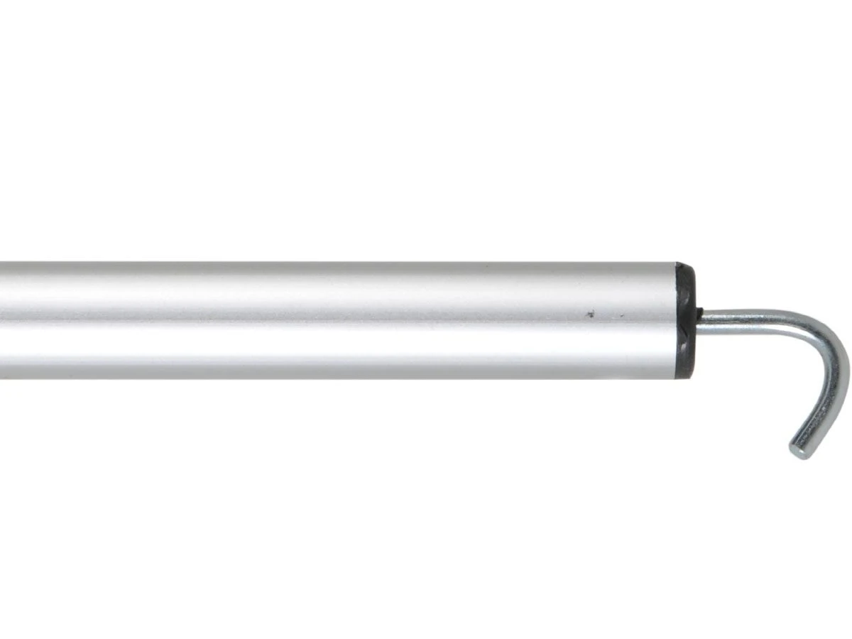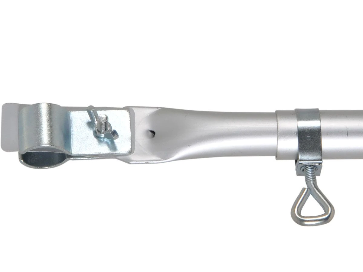 De Obelink dakligger aluminium 25 mm met haak is een extra dakstang die tussen het bestaande voortentframe geklemd kan worden. De dakstang is traploos in lengte verstelbaar d.m.v. een stelschroef. De voorzijde is voorzien van een daksteunklem welke op tentstokken tot Ø 28mm geklemd kan worden. De achterzijde is voorzien van een haak om in een caravanoog te kunnen haken.