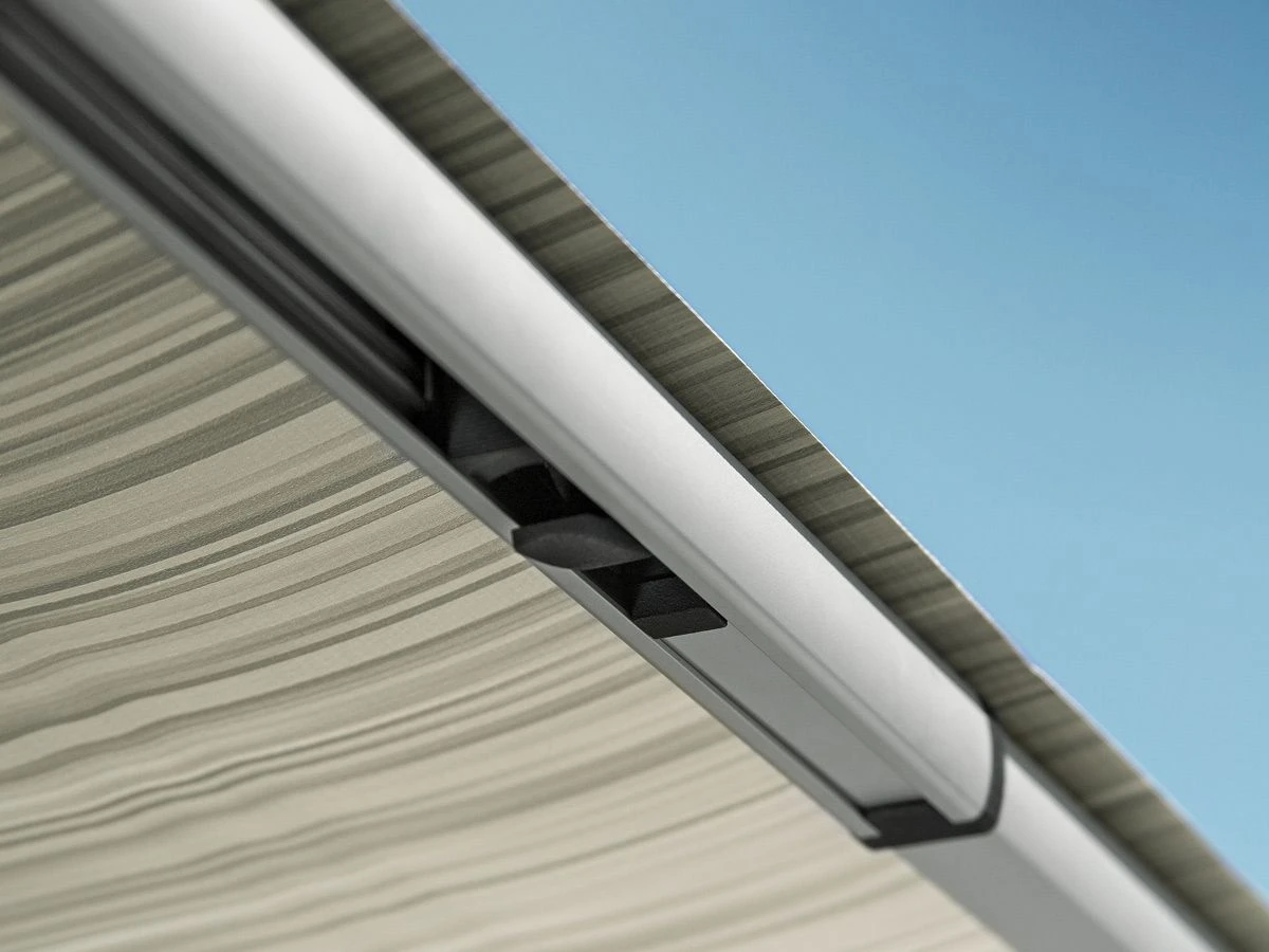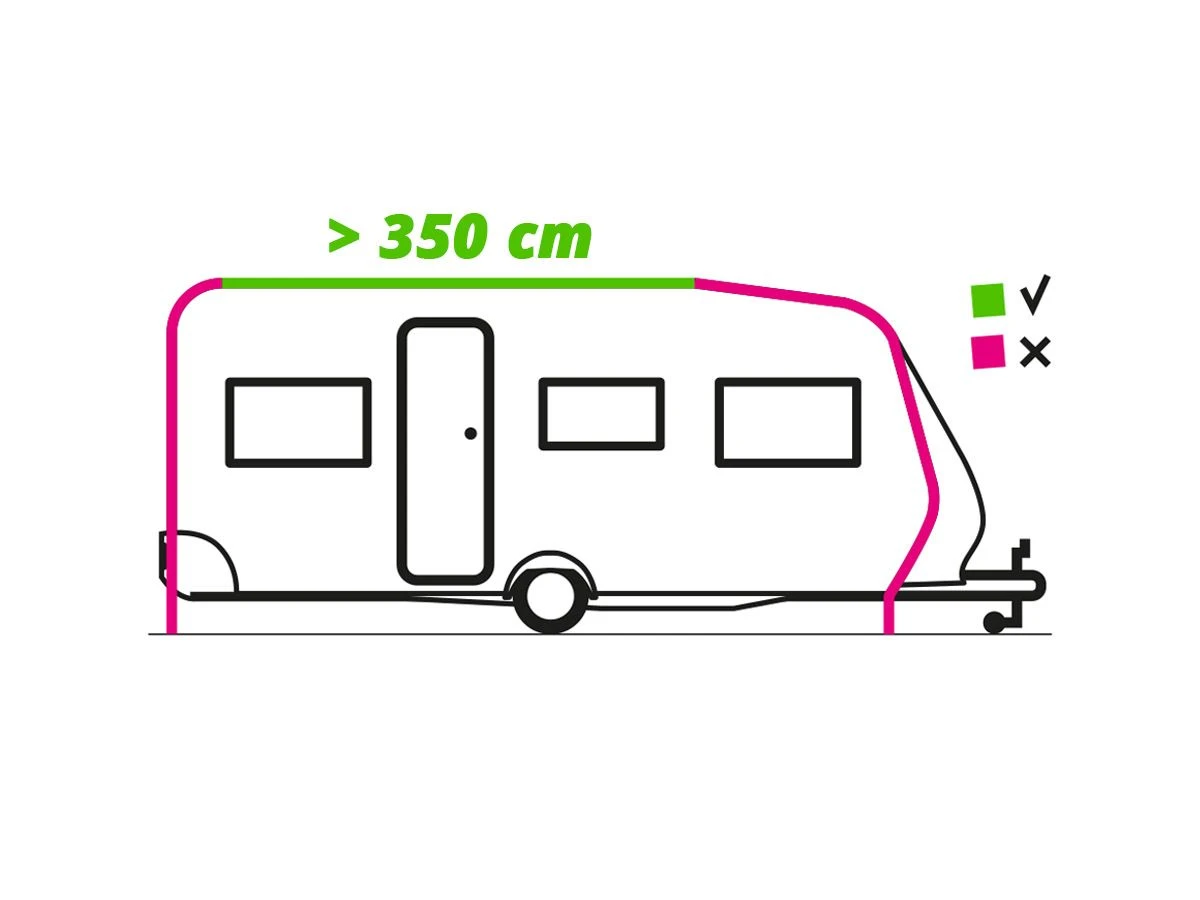 De Thule Omnistor 1200 past alleen in het rechte gedeelte van je caravanrail. Meet daarom altijd van tevoren na hoe lang dit stuk rail precies is. Heb je bijvoorbeeld een rechte caravanrail van 410 cm, dan past de Omnistor 1200 met een lengte van 400 cm perfect.
